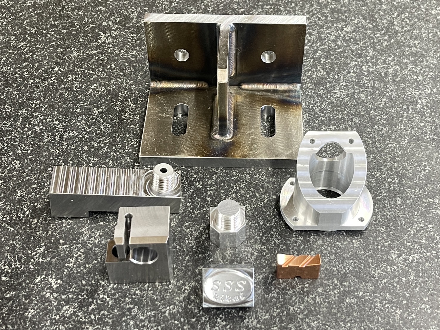 サンエス機械では、マシニングセンタによる角物加工を中心にNC旋盤による丸物加工等の精密部品加工を承っております。小ロットや試作品のご依頼にも柔軟に対応し、図面の相談段階から加工完了まで、一つひとつの工程に誠実にお応えします。