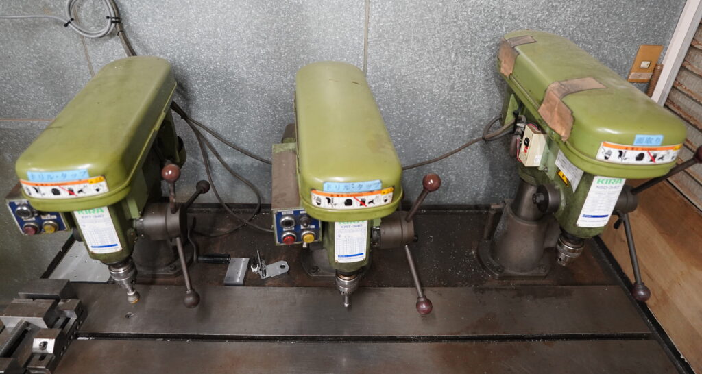 穴あけだけでなく、ねじ立て(タッピング)加工も一台でこなす高精度なドリル兼用機です。